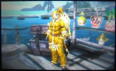 で、作ったのがガンナー用のルドロス防具一式と、武器は貫通弓の「スポンジギアII」(攻撃力144 水80 放散型)。