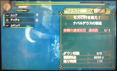 一応角も破壊できて、後は体力を削るだけなんですが・・・・・残り1分36秒でどーにか撃退成功!ヽ(;´Д`)ノ