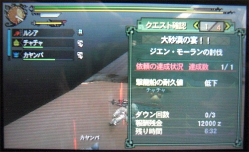 んで、次はまたジエン・モーランを狩るかなーと思ったのですが、そういやまだ完全に決着がついてないヤツがもう一匹いましたね。