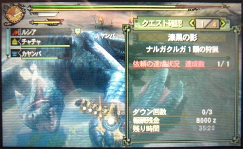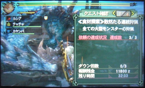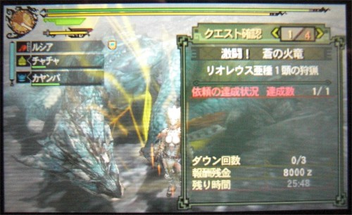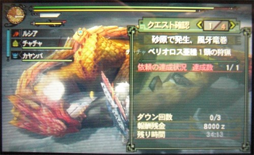 それほど大きな変化でもないので、なんとか戦って24分で捕獲。んー、龍属性の良い武器が欲しいですね~