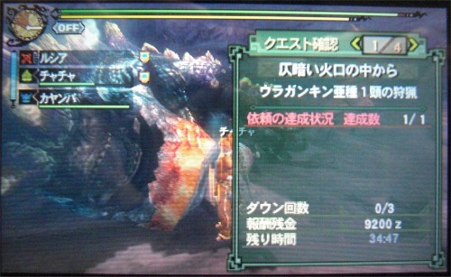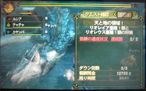 と、ここで初めて知ったのですが、同時狩猟の時でも、大連続狩猟の時みたいにモンスターの死体が結構早く消えちゃうんですね。