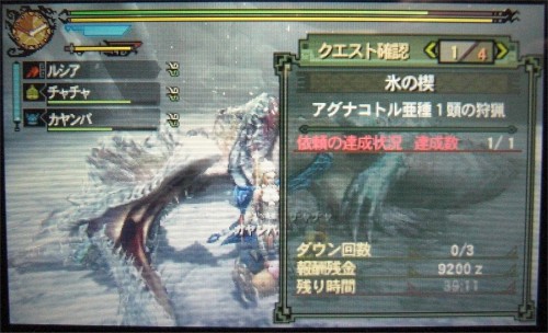 いつかは試してみたいなーと思いつつ、挑むのは「氷の楔」のアグナコトル亜種。