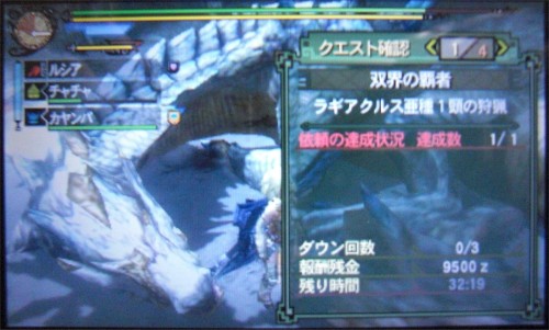 ちょっと悲しみを背負いつつ次はいよいよ緊急クエスト「双界の覇者」のラギアクルス亜種です。