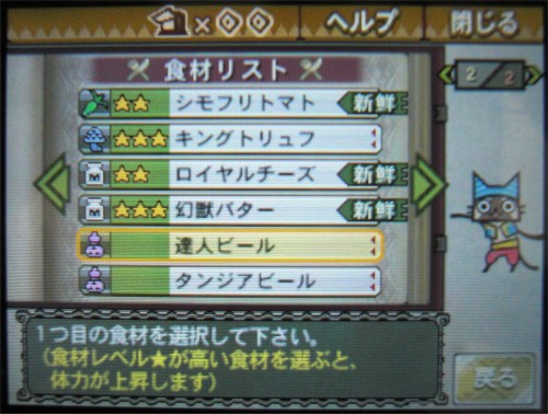 これでハンターランクが3になり、タンジアの港にいた「孤高の教官」と話したら食材に酒が追加されました。