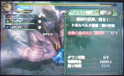 つーか、2匹同時狩猟なのになんで敵の体力が単体狩猟並なんだよっ!(ノ ゜Д゜)ノ == ┻━┻