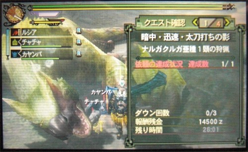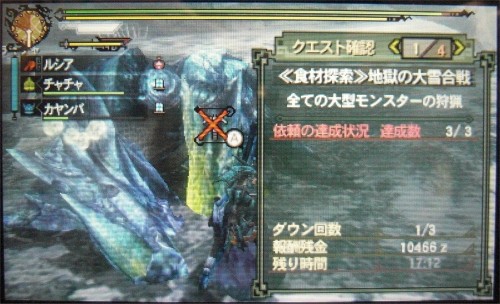 後はウラガンキン亜種だけなのですが・・・まー、慣れない武器だと。というか近接武器ではこいつは面倒すぎですね(´Д`;)ヾ