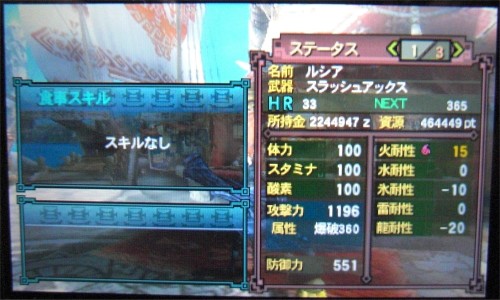 と、更にハンターランクの上限が解除されたらしく、これまで貯めたハンターランクポイントでハンターランクが一気に33になりました。