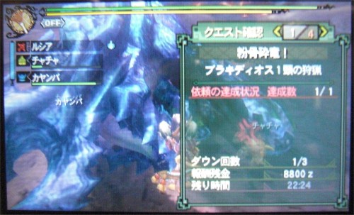で、次は・・・一気に難度を上げて港G級星7の「粉骨砕竜!」のブラキディオスに挑みます。