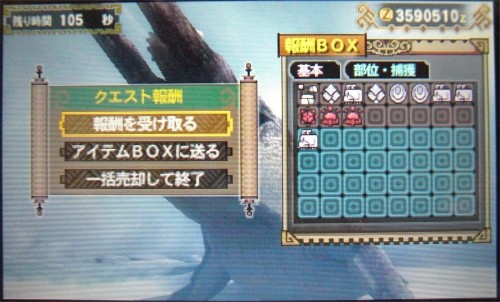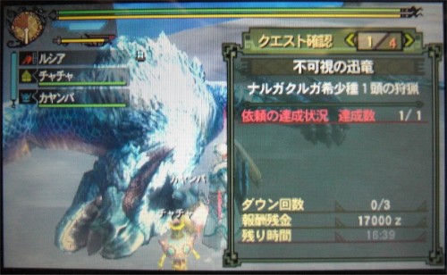 しかも、決戦ステージで長々と戦ってると段々ジエン・モーラン亜種の位置が横にずれていって、撃龍槍が当たらない位置へ行っちゃうのがなんか微妙に面倒です。
