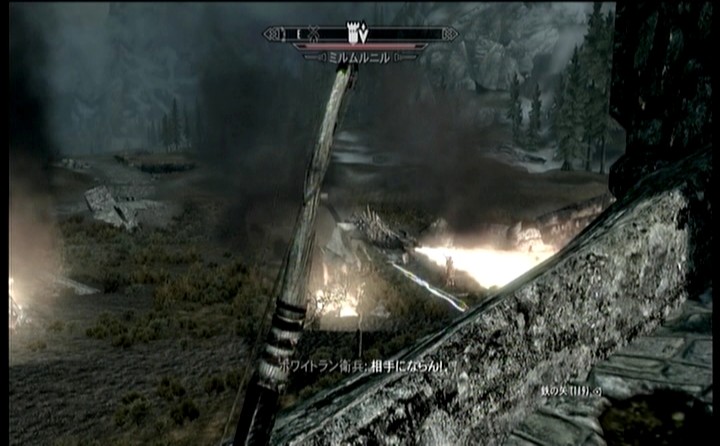 割とあっさりと倒せて、ドラゴンの死体に近づいたら、竜魂を吸収したとかなんとか。そして主人公はドラゴンボーンだとかどーとか。