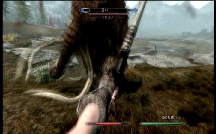 巨人も強いですがマンモスも同じくらい強く、どうしようにもないのでホワイトランまでダッシュで逃げます。