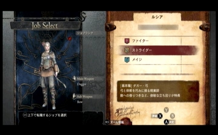 最初に選べるジョブは「ファイター」、「ストライダー」、「メイジ」の3つで、私が選ぶのは当然「ストライダー」。