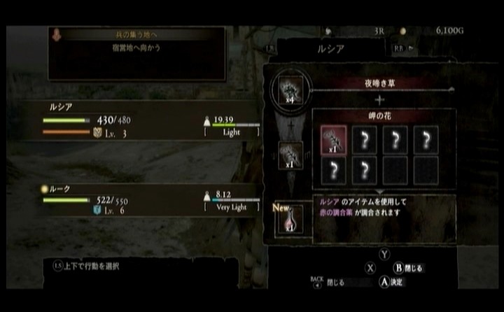 更に、拾ったアイテムは調合できるようで、色々作れるようですが・・・・どれがどう役に立つのか立たないのか。さっぱりですヽ(ー_ー )ノ