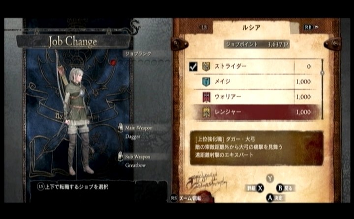 ただし、ジョブチェンジするにはジョブポイントが必要だし、装備品やらスキルも変わってくるので気楽な感じで試しに変えてみるってのはやめた方がよさそうです。
