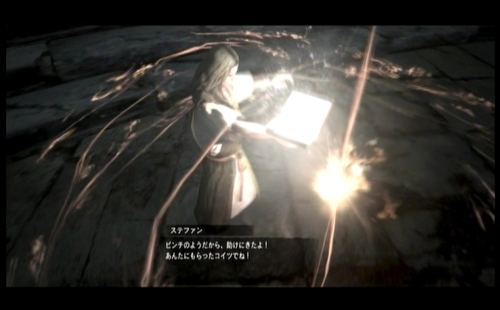 そんなこんなで長旅を経て、蒼月塔に到着。 そこから塔の頂上まではイベント戦みたいな感じで、NPC達と共に雑魚を蹴散らしつつ、迫り来るグリフィンから逃げ続けます。