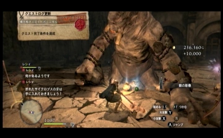 その後、かなり遠回りになりましたが今度はちゃんと眩み砦に真っ直ぐ向かい、そこの地下にあった洞窟に入り、その奥にいたサイクロプスを倒してクエストクリア。
