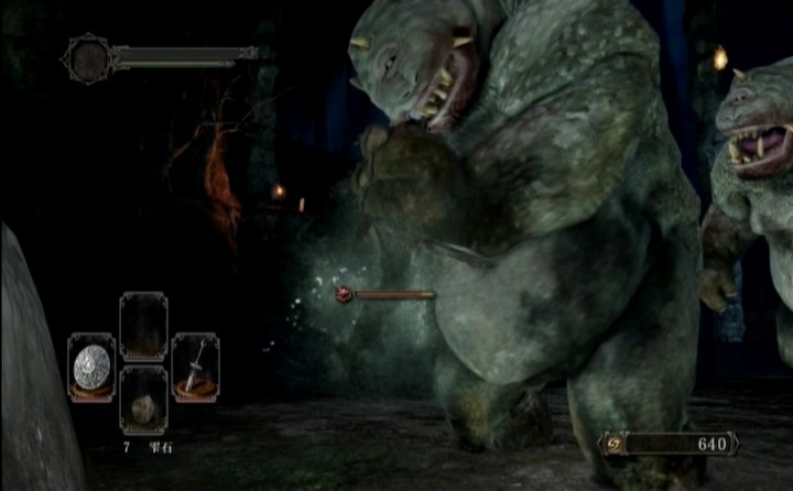 一つ目の巨人?みたいなのがいて、戦ってみよう!と突っ込んでみたら後ろにもう1匹いて、フルボッコにされるという心折設計(つД`)