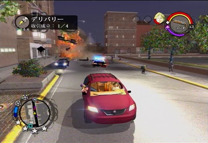 「デリバリー」はサプリという・・・・まあ要するに素敵な夢が見れる白い粉的なブツを、夢を追い求める人々に配ってまわるのを護衛する事。拳銃は無限で他の武器も一定の弾数を用意されてて、主に助手席に座って追ってくる敵対勢力や警察を退けるのですが、これがかなりの上位レベルになるまで意外と楽なんですよね。
